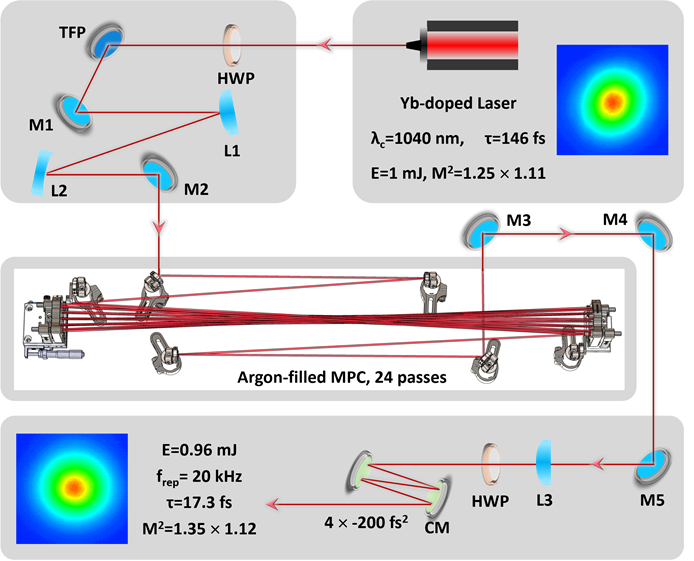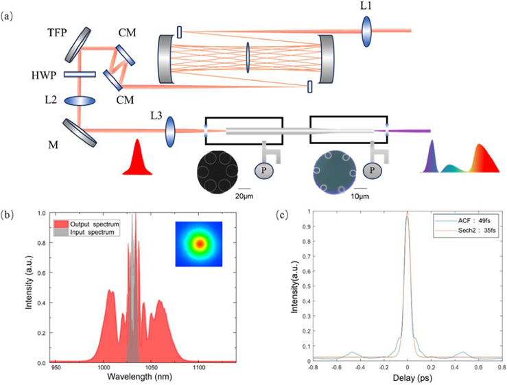 基于多通腔的非线性脉冲压缩装置与结果