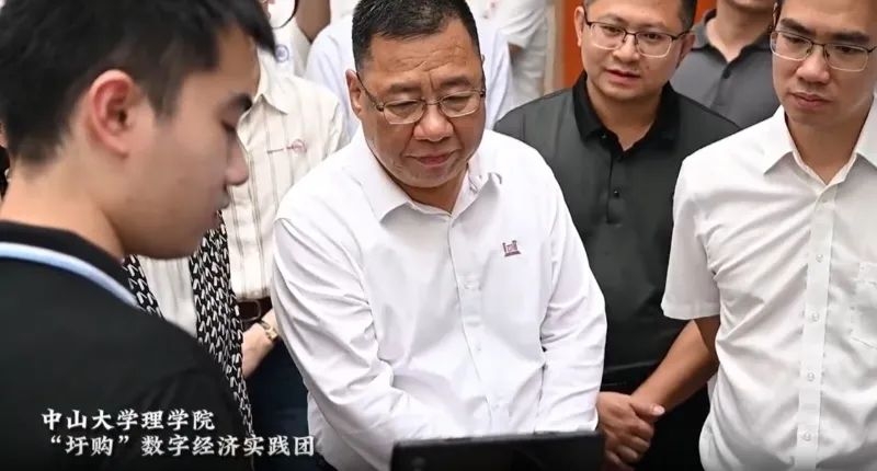 我院“圩购”数字经济实践团在连州市燕喜创新园进行项目汇报。实践团学生代表应卓恺、赵正阳向太阳集团tyc9728党委朱孔军书记、清远市委黄建平副书记与连州市委潘正焕书记等相关领导进行汇报,展示实践团三年项目的核心成果。