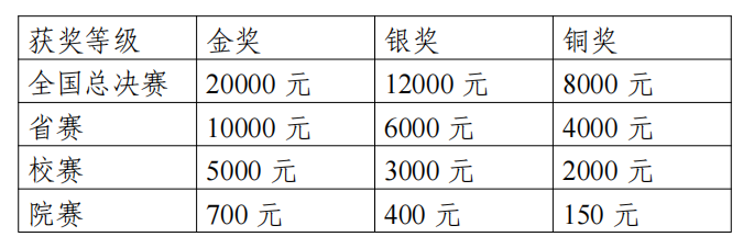 为激励师生积极参与该项赛事,力争取得好成绩,营造良好的就业氛围,对于参赛获得好成绩的选手,给予扶持奖励,不重复奖励,按获得最高级别奖项奖励。奖励内容如下: