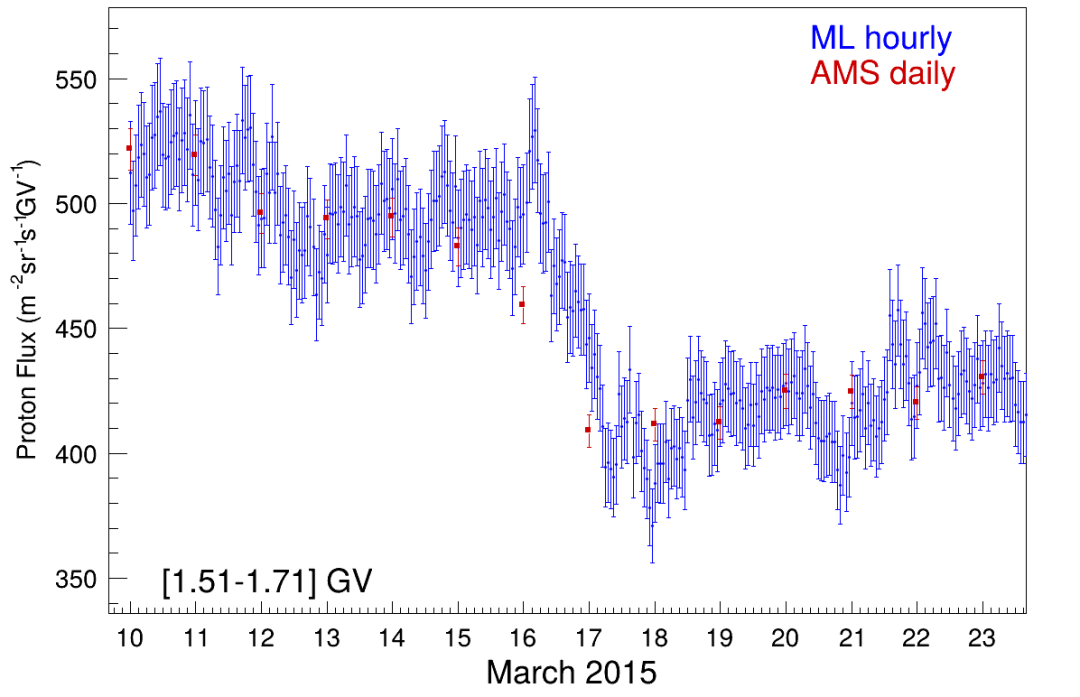 宇宙射线在进入太阳系时,其强度会受到太阳活动(如太阳黑子周期、日冕物质抛射等)的调制。精确测量其通量,特别是占主要成分的质子通量,对于理解日球层物理和空间天气至关重要。目前,最精确的宇宙射线质子通量数据来自国际空间站上的阿尔法磁谱仪(AMS-02),但其数据存在中断期,且时间分辨率有限,难以捕捉如福布什下降(Forbush Decrease)等持续仅几天甚至数小时的瞬变事件。
