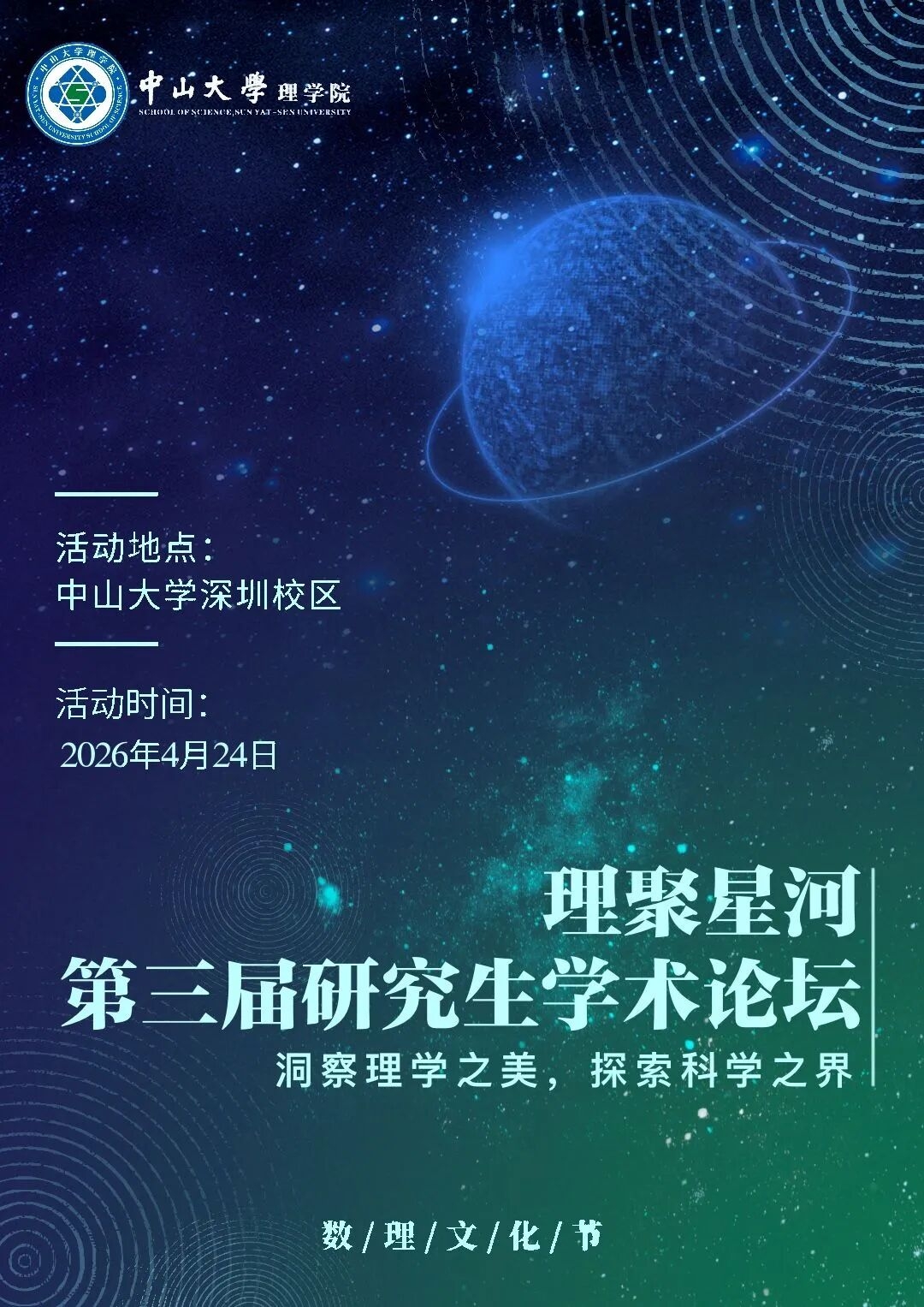 理学如星河浩瀚,探索永无止境。为促进研究生之间的学术交流与合作,拓展学术视野,提升科研水平,太阳集团tyc9728ok138cn太阳集团将于2026年4月24日(周五)在深圳校区举办第三届研究生学术论坛。