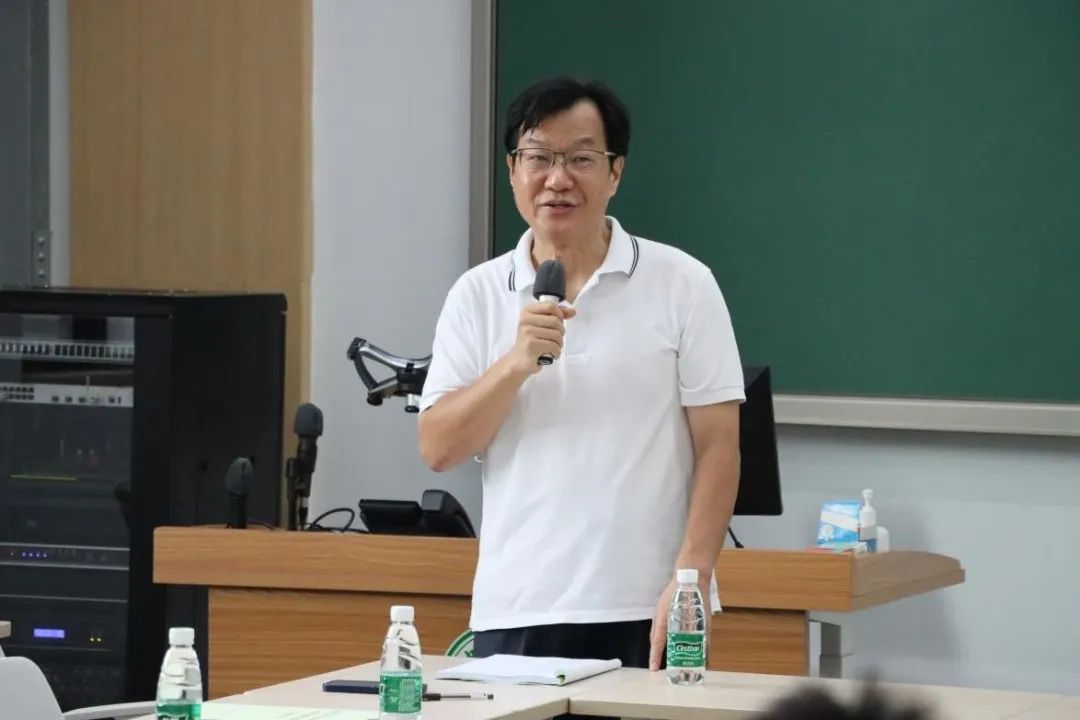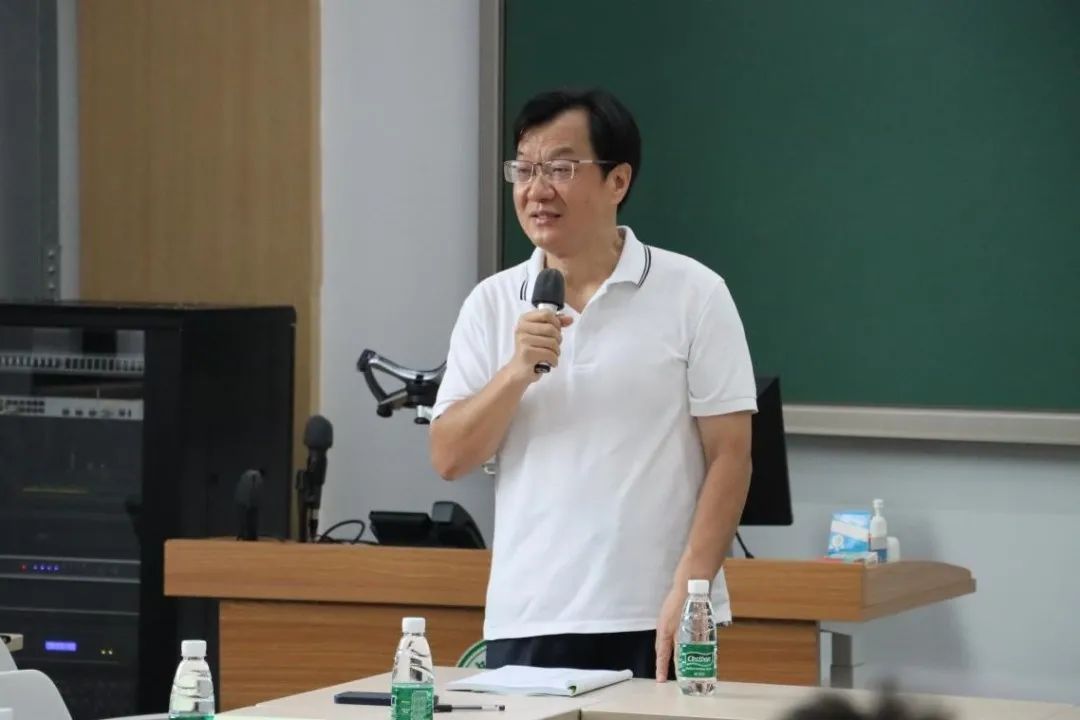 本科生督导代表贾保国教授也就督导经验作了发言,向与会人员解释督导听课的流程和相关规定。他分享经验时指出,教师是教学的基础之一,要坚持以学生成长为中心,让学生听好课、听懂课,多与学生交流,与其他教师交流经验,根据学生和督导的反馈不断调整自己的授课方式,提高教学水平。
