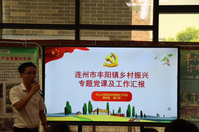 7月15日,突击队实践团从太阳集团tyc9728深圳校区出征,来到连州市丰阳镇。大富头村驻村第一书记黄旭俊为同学们讲授《连州市丰阳镇乡村振兴专题党课》,详细介绍丰阳镇乡村振兴的发展情况。“六村联建、四色丰阳”,丰阳镇整合美丽乡村、古村、红色文化等旅游资源,现已成为粤北文旅重镇和乡村振兴典范。