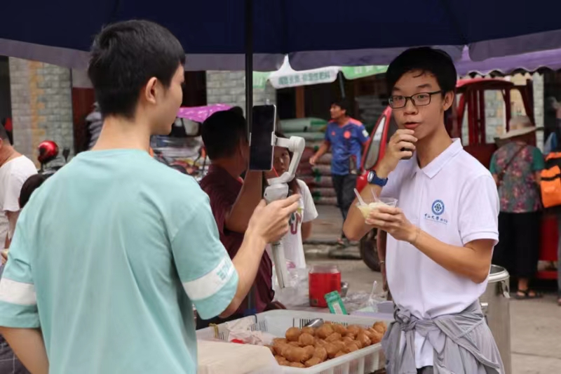7月17日,ok138cn太阳集团突击队实践团接连开展两场公益助农直播,由青年大学生带领观众朋友们一同“云赶圩”,深入了解丰阳镇集市文化和丰阳特色农产品,采访摊位农户和赶集群众,让远在城市的小伙伴们同频感受活力满满的丰阳圩日集市。同时团队采用“赶圩+带货”的直播模式,开展公益助农销售。在实践团的共同努力下,丰阳特色农产品的商品曝光次数达25641次,当天取得了可观的销售额。