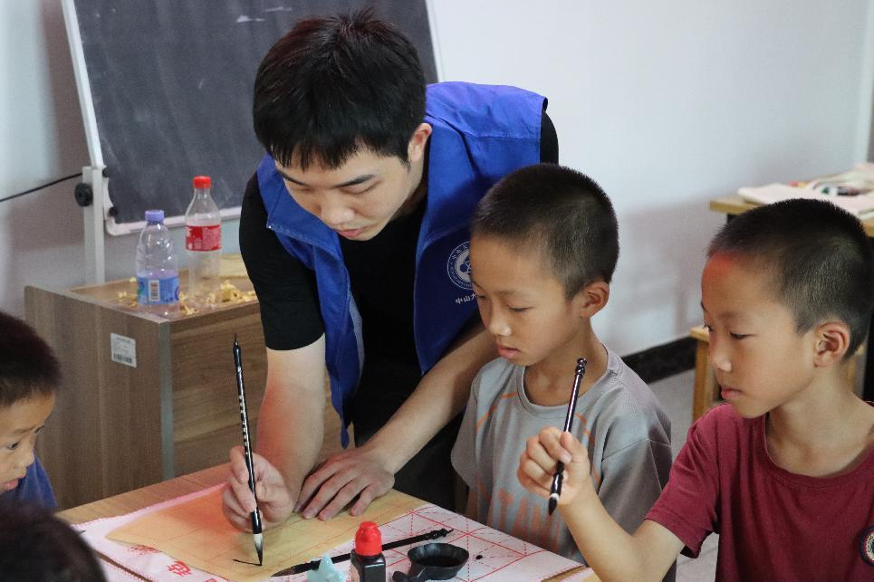 下午,志愿者组织开展书法与绘画教学。字如其人,人亦如字。通过纠正握笔、坐姿、临摹字贴等,志愿者带领小朋友们感受中华优秀传统文化的博大精深。绘画组引导小朋友们发挥想象力,自由创作自己的书袋。