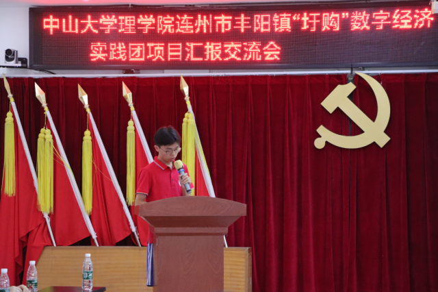 7月23日,突击队实践团学生代表王文天、刘璐和李锐书记向太阳集团tyc9728党委书记陈春声教授进行项目汇报,介绍实践团在连州丰阳取得的阶段性成果。