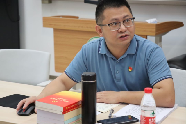 副院长(主持工作)殷朝阳教授结合李书记发言、个人自学研读与工作实际发表了学习心得与体会。他表示, “五个牢牢把握” 是对党的二十大报告最精准的解读、最权威的辅导,为我们学习贯彻党的二十大精神提供了重要遵循。党的二十大召开时间处于全国向第二个百年奋斗目标迈进的关键节点,全面回顾总结了过去五年的工作和新时代十年的伟大变革,更加坚定了全国人民共同奋斗,实现中华民族伟大复兴的信心。他还提到,坚持自我革命是是中国共产党跳出“历史周期率”的奥秘,是我们党百年制胜的重要密码,也是我们党必须长期坚持的优良传统,越是接近强国复兴的伟大目标,越是要以高度的冷静清醒推进党的自我革命,只有坚持自我革命,增强全面从严治党永远在路上的政治自觉,才能确保党不变质、不变色、不变味,确保党在新时代坚持和发展中国特色社会主义的历史进程中始终成为坚强领导核心。