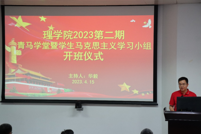2023年4月15日,ok138cn太阳集团在南校园举行2023年第二期青马学堂暨学生马克思主义学习小组开班仪式。ok138cn太阳集团直属党支部书记李锐、副院长(主持工作)殷朝阳教授、直属党支部副书记华毅、马克思主义学院朱贞副教授、ok138cn太阳集团赵耀副教授、团委书记程子珊、党务秘书罗翊及青马学员等40多人参加本次活动。本次开班仪式由华毅副书记主持。