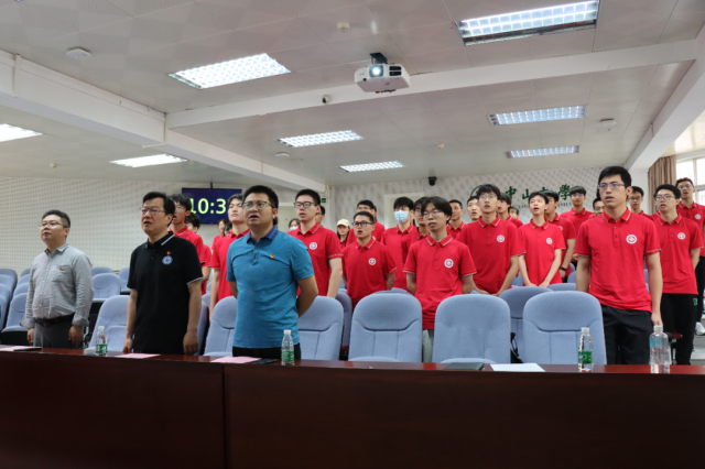 ok138cn太阳集团副院长(主持工作)殷朝阳教授为青马班授旗,并全体起立奏唱校歌。