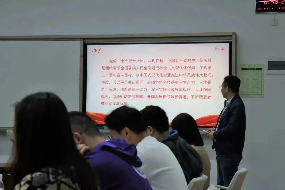首先,华毅副书记结合党的二十大精神,领学习近平总书记关于教育的重要论述和高松校长《高校要坚定不移担当自主培养创新型人才的时代重任》文章。华毅副书记指出,习近平总书记关于教育的重要论述为做好新形势下高校学生工作、特别是学生思想政治工作指明了方向,提供了根本遵循。我国是中国共产党领导的社会主义国家,这就决定了我们的教育必须把培养社会主义建设者和接班人作为根本任务,确保党的事业源源不断、后继有人。华毅副书记对学院领导老师一直以来对学生工作的关心支持表示感谢,并强调要不断提高政治站位,深入学习贯彻党的二十大精神和学校人才培养理念,不断完善学院学生工作体系,健全学院“三全育人”工作机制,充分整合学院师生力量,努力培养德智体美劳全面发展的社会主义建设者和接班人,培养能够引领未来,具有学习力、思想力、行动力的创新型人才。