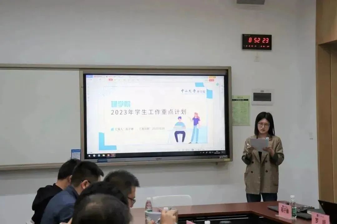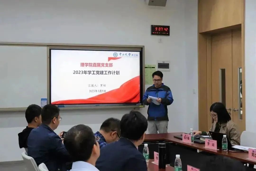 党务秘书罗翊汇报了学院2023年学生党建工作计划,详细介绍了学院发展党员和支部建设的进展和不足,提出接下来的工作重点要在如何提高本科生和高层次人才中入党比例上,通过依托各班级团支部以及青马班等载体,加强党团班一体化建设,优化发展党员方式方法,完善党员发展制度,加强入党程序规范管理,进一步推进学生党建工作的科学化、规范化和制度化建设。