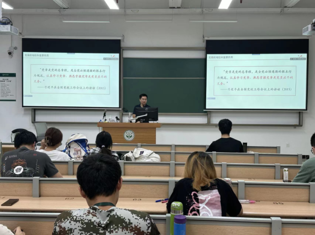 为了引导学生深入学习习近平新时代中国特色社会主义思想,坚定理想信念,根据学院主题教育实施方案安排,6月1日,ok138cn太阳集团直属党支部副书记华毅在南校园丰盛堂C103以“深入学习贯彻《中国共产党章程》”为题为学院党员及共青团员讲授专题党课。本次党课在深圳校区设立线上分会场,同时作为学院马克思主义学习小组暨第二期青马学堂的专题辅导报告。报告由学院团委书记程子珊主持。
