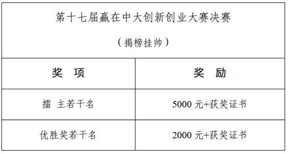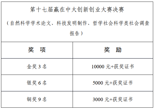 为贯彻落实《国务院办公厅关于进一步支持大学生创新创业的指导意见》(国办发〔2021〕35号),紧密围绕立德树人根本任务,进一步培养大学生创新精神、创业意识和创业能力,积极推进创新创业教育改革,为大学生打造一个展示才华、同台竞技、互相学习、实现理想的实践平台,现决定举办第十七届赢在中大创新创业大赛,有关事宜通知如下: