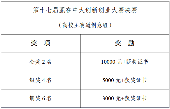 以上奖项数量视大赛报名数量及项目情况而定。获奖项目指导老师也将相应获得证书及奖金。