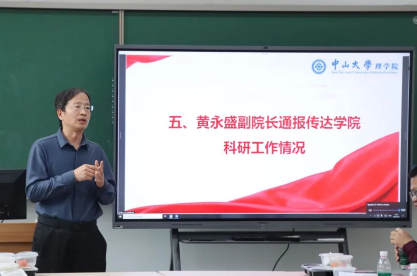 黄永盛副院长通报传达了学院科研工作情况。黄院长首先介绍了学院各类基金项目申报进展以及相关实验室建设进度。他指出,学院组织专任教师围绕学科最新研究成果与重大项目申报进行了深入交流和探讨,积极与上级部门对接,全力推动专业实验室建设工作。他强调,学院将在科研成果常态化收集、科研活动和成果宣传、研究生培养支持体系建设以及本硕博贯通培养等工作中创新模式、提升成效,进一步开拓科研工作新局面。