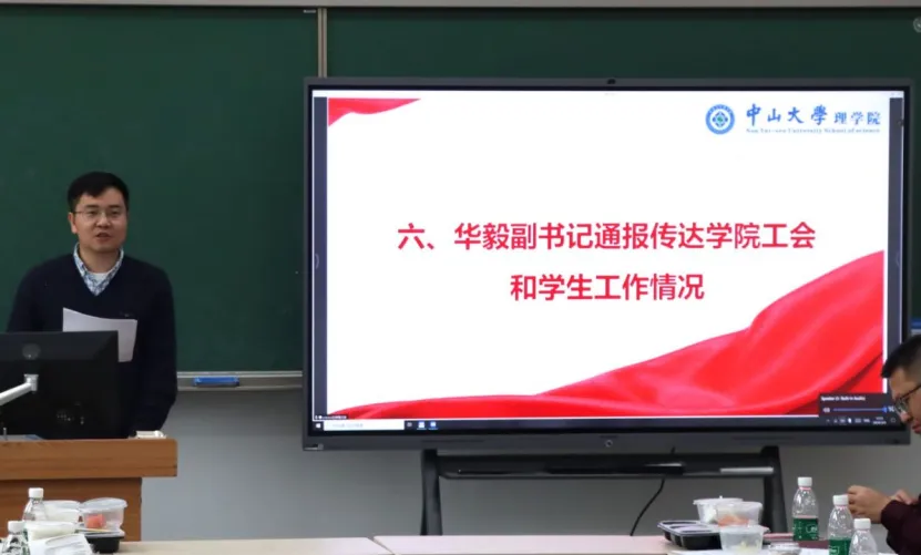 华毅副书记通报传达了近期学院工会工作以及学生工作要点。他重点传达了2024年第一次全校学生工作例会的有关精神,强调学院学生工作将按照学校统一部署,建立健全“以学生成长为中心”的工作体系,以“思政+”“党建+”为抓手,凝心聚力发挥“三全育人”合力,推动学生工作高质量发展,助力学院创新人才培养。他还通报了学校安全相关工作,强调师生要提高站位,把校园安全特别是消防安全工作放在心上、摆在重要位置,严格执行学校的各项安全制度,全面保障师生的安全稳定。