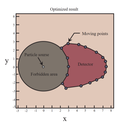 而在数值方法方面,我们采用了更加灵活的途径,放宽了对目标探测器表面的求解限制,并引入了更多真实而复杂的参数。通过算法设计和数值求解,我们初步获得了在已知粒子分布密度函数的条件下对目标探测器表面进行求解的方法。这种方法的灵活性使其适用于更广泛的场景,为设计者提供了更大的设计空间。