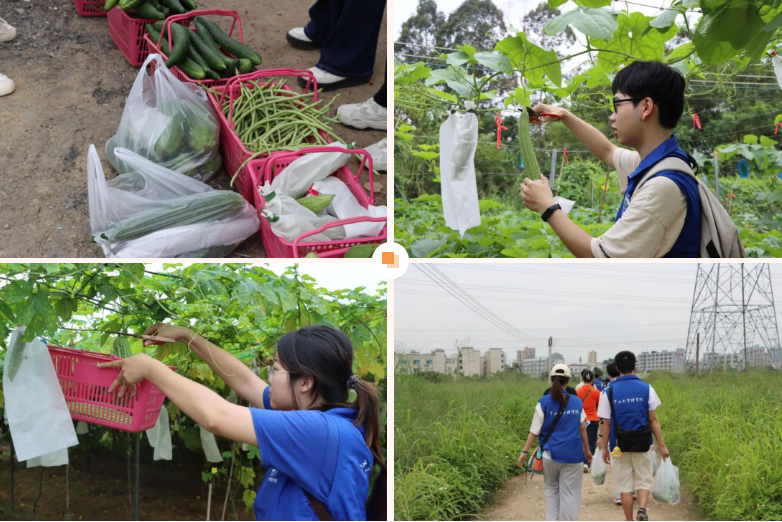 在马山头社区先锋农场的农田里,同学们积极参与了采摘活动,手持剪刀、篮子,亲手采摘了新鲜的蔬菜和瓜果,学习了农作物的种植、养护和采摘技巧。在劳动过程中,学生们不仅感受到大自然的慷慨馈赠,也深刻体会到了农民的辛勤付出和劳动成果的来之不易。