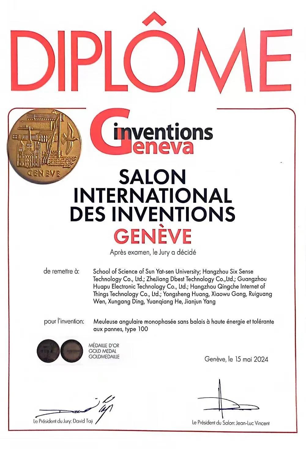 2024年4月17日至4月21日由瑞士联邦政府、日内瓦州政府、日内瓦市政府和世界知识产权组织共同举办的第49届日内瓦国际发明展在瑞士日内瓦顺利举行。此次展会共有来自45个国家和地区的1400多项发明参展。中国代表团组织了762个项目线上线下参展,参展发明主要集中在机械、电子、医学、环保、可再生能源等类目。经过评委会现场评审,中国代表团最终斩获70项金奖和97项银奖,金银奖获奖比率名列前茅。