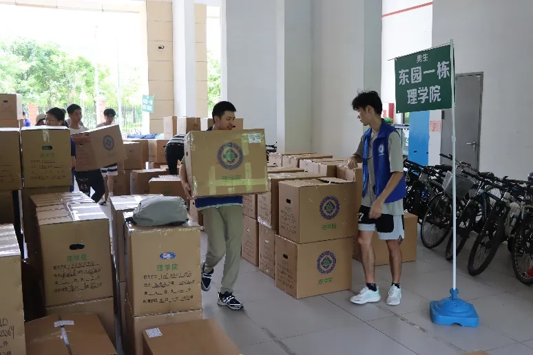 辅导员组织学生会和志愿者提前检查深圳校区的宿舍,分发南校园搬迁物资。纵使夏日炎炎,志愿者们依旧不畏辛苦,倾心尽力确保将物资分发给每一位同学,协助女生宿舍搬运重物。与此同时,学院在深圳校区为每个宿舍定制专属门牌,准备清凉饮料,热烈欢迎2023级同学们回家。