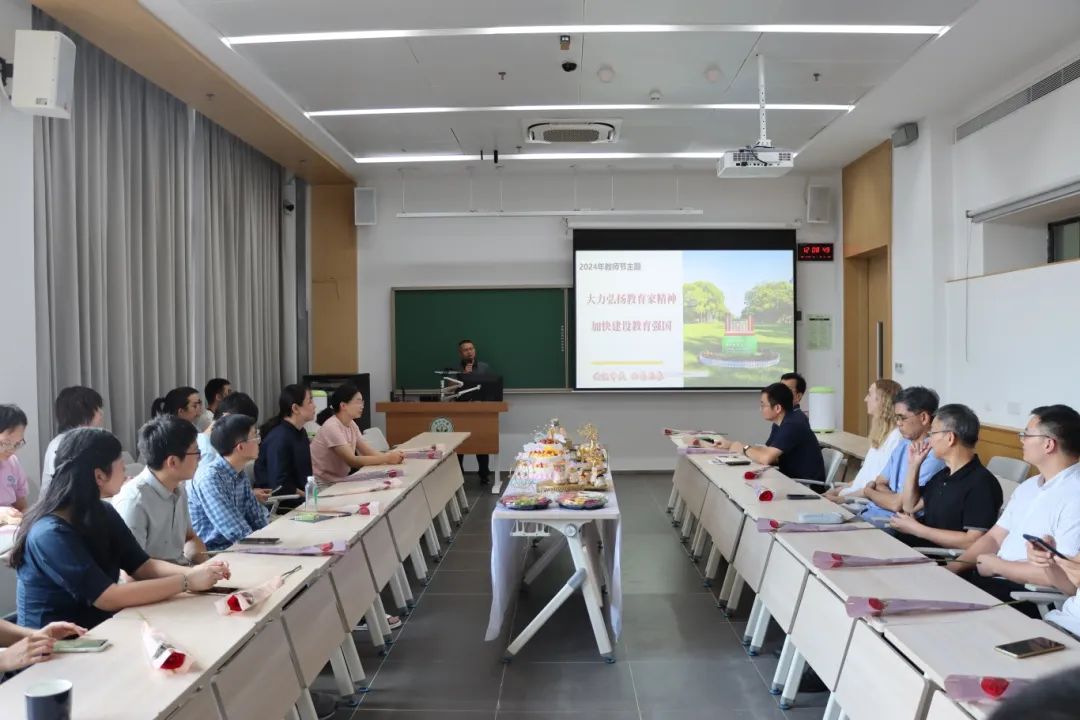 一支粉笔,两袖微尘,三尺讲台,四季耕耘。9月10日是我国第40个教师节,学院在学院会议室举行了庆祝教师节座谈会暨教职工集体生日会活动。学院教职工齐聚一堂,围绕“大力弘扬教育家精神,加快建设教育强国”主题,结合自身教学、科研、服务等工作经历畅谈教育初心与使命,努力争做新时代“好老师”“大先生”。学院党政领导班子和全体教职工出席本次活动。