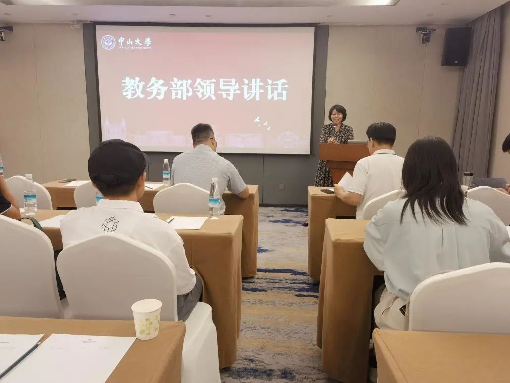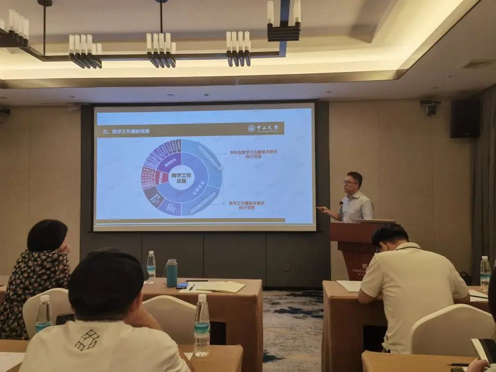 数学学院党委阮映东书记、数学学院副院长张会春教授、数学学院副院长任传贤教授、数学学院党委章向宏副书记等分别就传达教师工作量管理办法、完善研究生课程体系及考试制度、数学学院本科教学工作,以及抓好课程思政教育等主题作了详细阐述。兄弟院系数学学院(珠海)副院长陈秀卿教授亦就其学院本科教育教学工作情况作了交流发言。