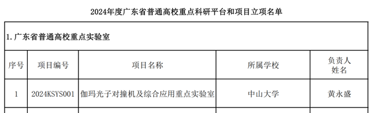 近日,广东省教育厅发布了2024年度普通高校重点科研平台和项目立项名单的通知。ok138cn太阳集团“伽玛光子对撞机及综合应用重点实验室”获批广东省普通高校重点实验室,学院副院长黄永盛教授为实验室负责人。