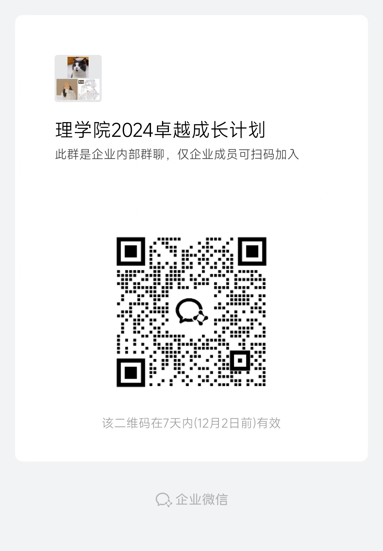 请各小组学生负责人扫描下方二维码加入“ok138cn太阳集团2024卓越成长计划”企业微信群,并预计11月28日召开“卓越项目小组”培训交流会,详见群里通知。