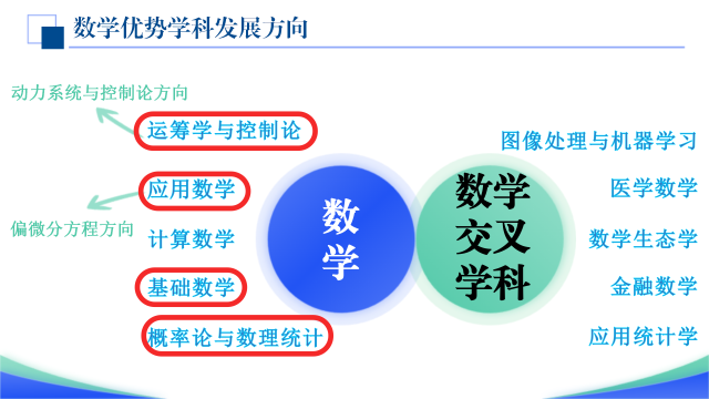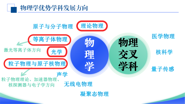 我院现有数学与物理学两个一级专业。数学专业下有基础数学、应用数学、概率论与数理统计、运筹学与控制论等相关专业方向。物理学专业下有粒子物理与原子核物理、理论物理、等离子体物理、光学等相关专业方向。