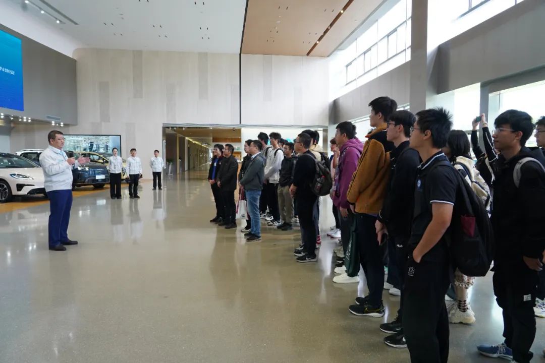 在刘飞雷校友的带领下,我院师生来到广汽埃安的厂区。在展厅内,广汽埃安最新和最具代表性的车型一字排开,让我们充分感受到广汽埃安在创新与品质上的卓越追求。在工作人员引领下,我院师生走进埃安生产车间。通过车间人员的专业讲解,同学们深刻感受到了广汽埃安在生产工艺和质量控制方面展现出的精湛技艺和工匠精神。“科技向上,埃安向前”,我院师生代表体验了埃安无人自动驾驶技术,让大家对智能化、便捷化出行方式有了更直观的认识。刘飞雷校友鼓励同学们要打好数理专业基础,基础研究的突破是打赢关键核心技术攻坚战的“法宝”,期待同学们未来能为国家和民族科技发展贡献力量。