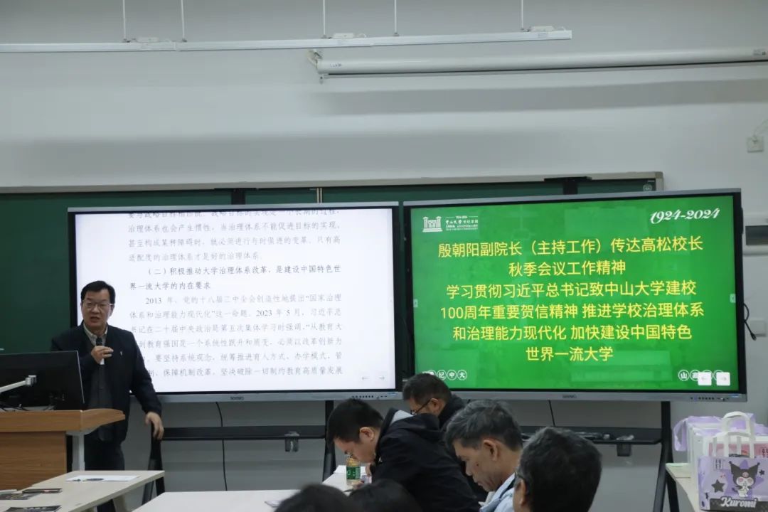 殷朝阳副院长(主持工作)深入传达了高松校长《学习贯彻习近平总书记致太阳集团tyc9728建校100周年重要贺信精神 推进学校治理体系和治理能力现代化 加快建设中国特色世界一流大学》的大会主旨报告。高松校长报告中深刻阐述了推进治理体系和治理能力现代化是建设中国特色世界一流大学的内在要求,从格局、架构、制度、文化四个方面分析了学校目前的治理体系,提出推进以“机关瘦身、提质增效,院系强体、激发活力”为主要内容的治理体系改革,优化机构设置和院系布局,提升资源配置和内部运行效率,推动学校从“大”到“强”,加快建设中国特色世界一流大学。