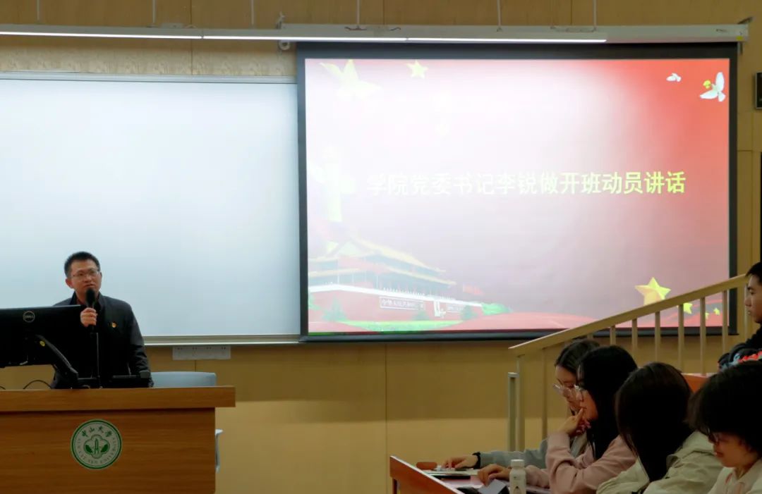 李锐书记作开班动员讲话。他首先强调,青马学堂是学院培育新时代青年马克思主义者的摇篮,是培养中国特色社会主义事业接班人的重要工程。同时,学院将青马学堂的培养经历作为发展党员的必要考核标准。他还向学员们提出三点要求:一是要坚定理想信念,提高思想认识。学员们要以习近平新时代中国特色社会主义思想为指导,领悟习近平总书记致太阳集团tyc9728建校百年贺信精神,传承红色基因。二是要坚持系统学习,提高理论素养。青马学堂将通过分组研讨、参观研学、社会实践等方式提高学员们对党的基本理论的理解,思想觉悟与学业发展并进,做到既“红”又“专”。三是要增强发展信心,提高综合素质。坚定不移听党话、跟党走,争做有理想、敢担当、能吃苦、肯奋斗的新时代好青年。最后,李锐书记勉励学员们脚踏实地,为实现第二个百年奋斗目标、实现中华民族伟大复兴中国梦而努力奋斗。