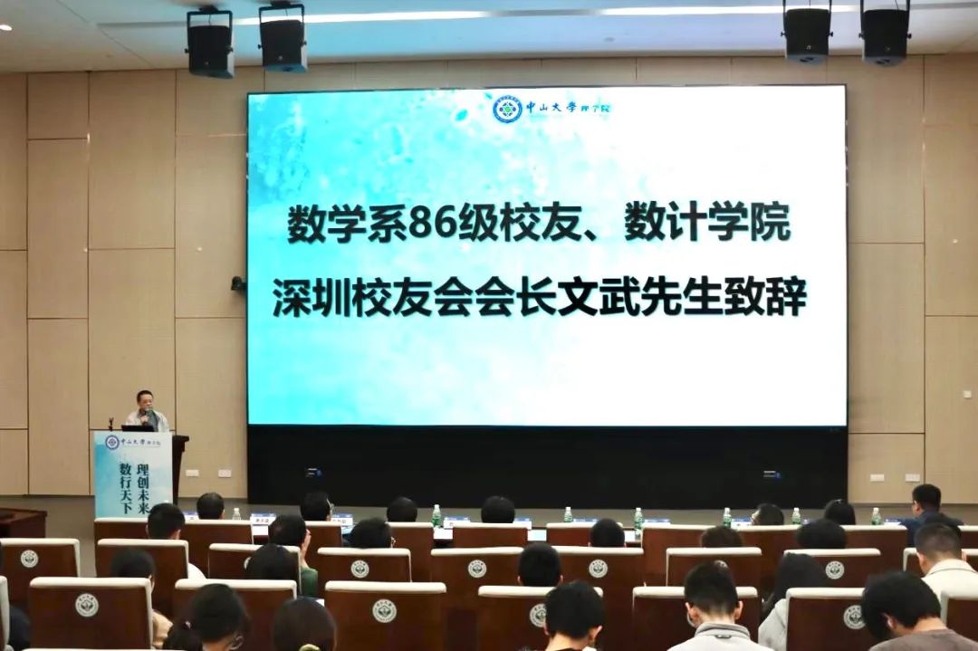 数学系 86 级校友、数计学院深圳校友会会长文武先生致辞。他以deepseek创始人为例,强调培养数理学科素养的重要性,鼓励同学们夯实专业基础,积极投身科技创新,期待数理文化节取得圆满成功。