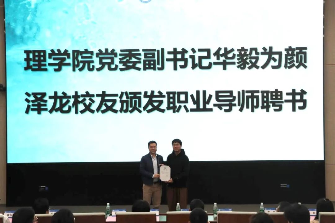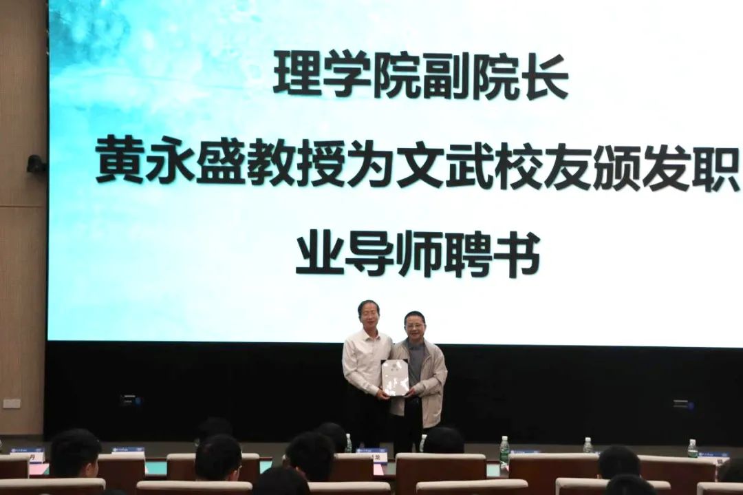 学院副院长黄永盛教授与党委华毅副书记分别为文武、颜泽龙校友颁发职业导师聘书,为培养我院高质量人才携手共进。