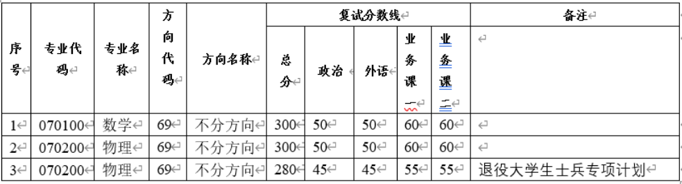 1.我院各专业复试分数线如下: