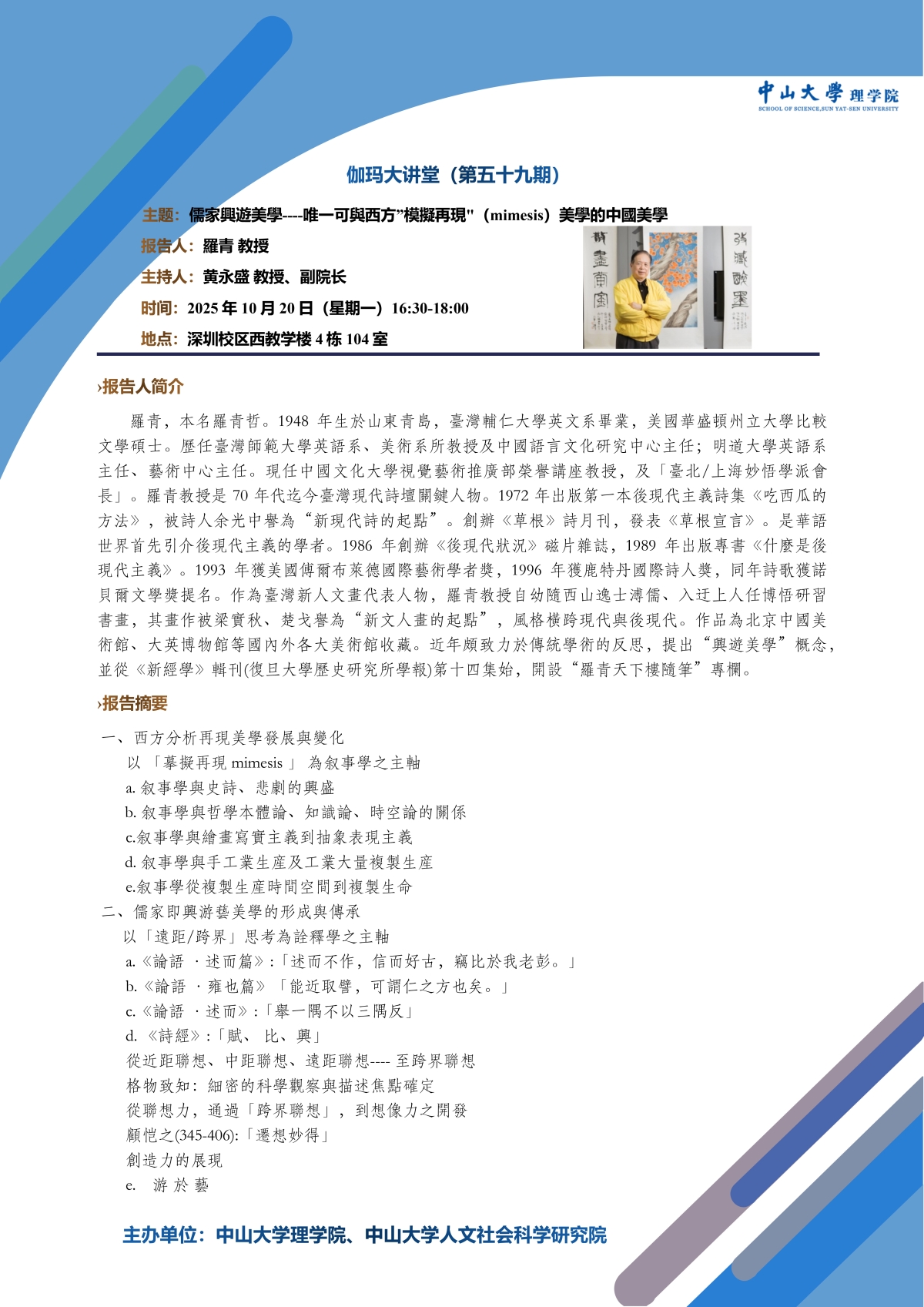 伽玛大讲堂(第59期):儒家興遊美學----唯一可與西方”模擬再現"(mimesis)美學的中國美學