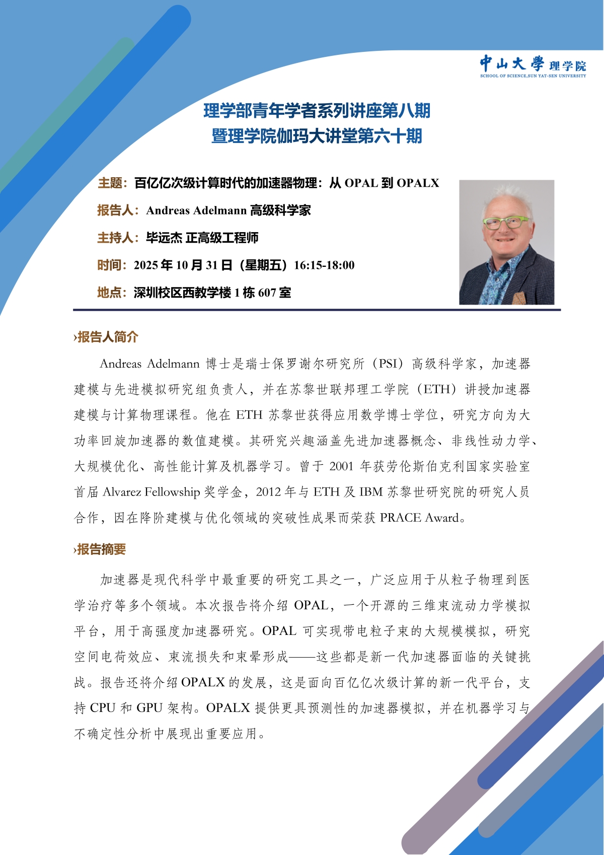 理学部青年学者系列讲座(第8期)暨ok138cn太阳集团伽玛大讲堂(第60期):百亿亿次级计算时代的加速器物理——从 OPAL 到 OPALX