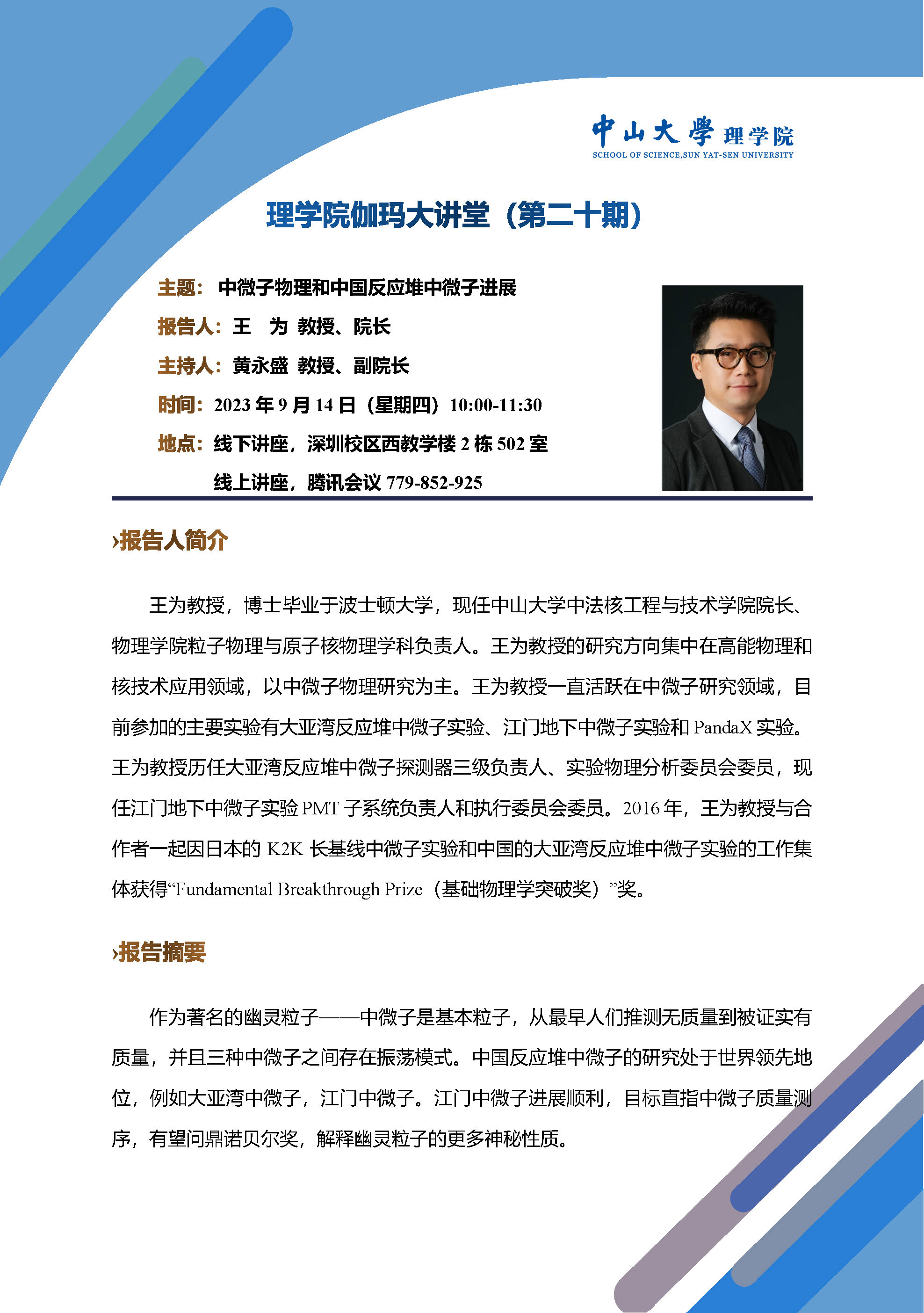 伽玛大讲堂(第20期): 中微子物理和中国反应堆中微子进展