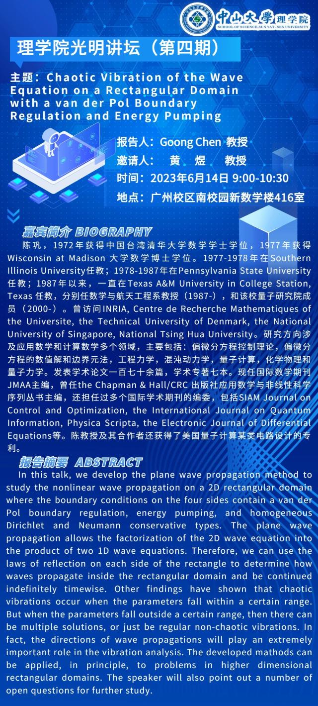 光明讲坛(第4期):矩形上带van der Pol边界正则条件和能量注入条件的波方程的混沌振动