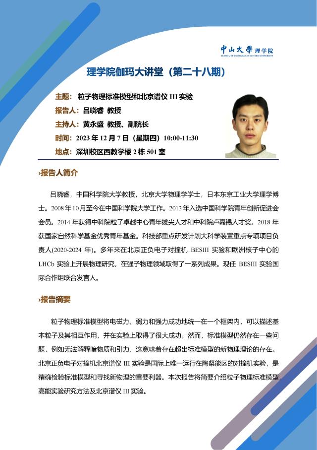 伽玛大讲堂(第28期):粒子物理标准模型和北京谱仪III实验