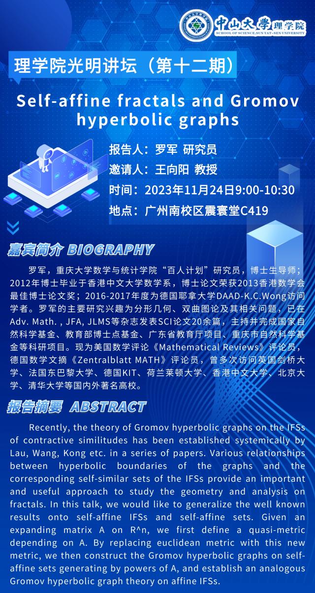 光明讲坛(第12期):Self-affine fractals and Gromov hyperbolic graphs