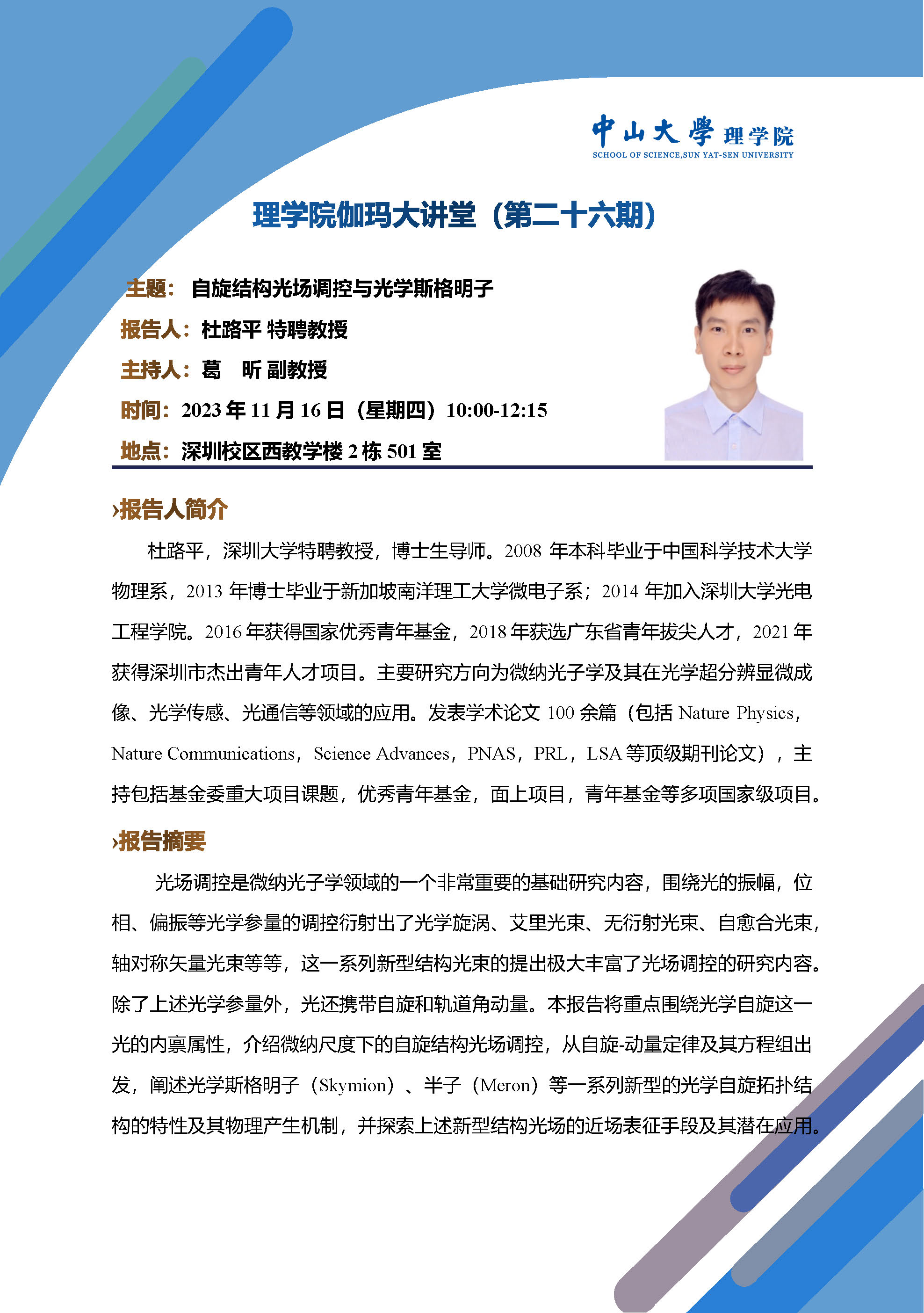 伽玛大讲堂(第26期):自旋结构光场调控与光学斯格明子
