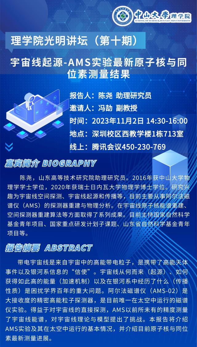 光明讲坛(第10期):宇宙线起源-AMS实验最新原子核与同位素测量结果