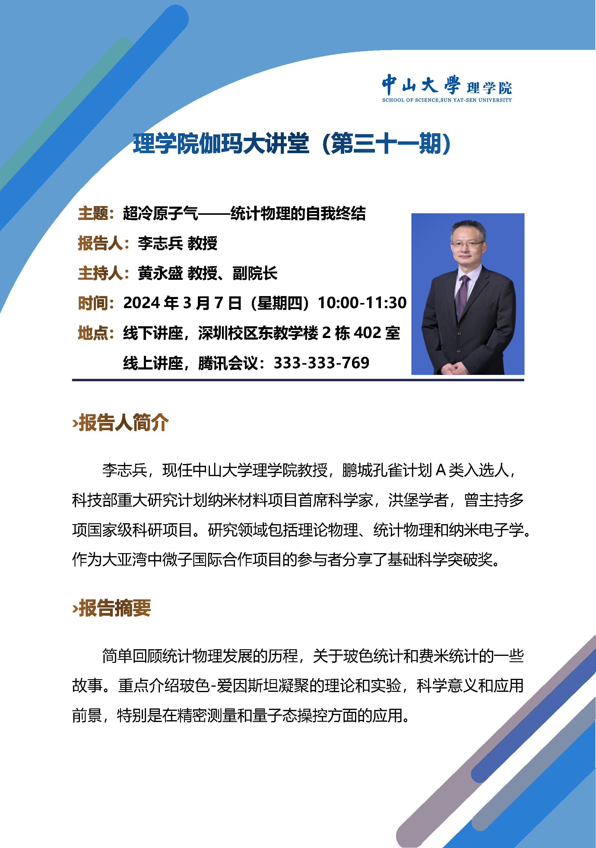线下讲座,深圳校区东教学楼2栋402室;线上讲座,腾讯会议:333-333-769