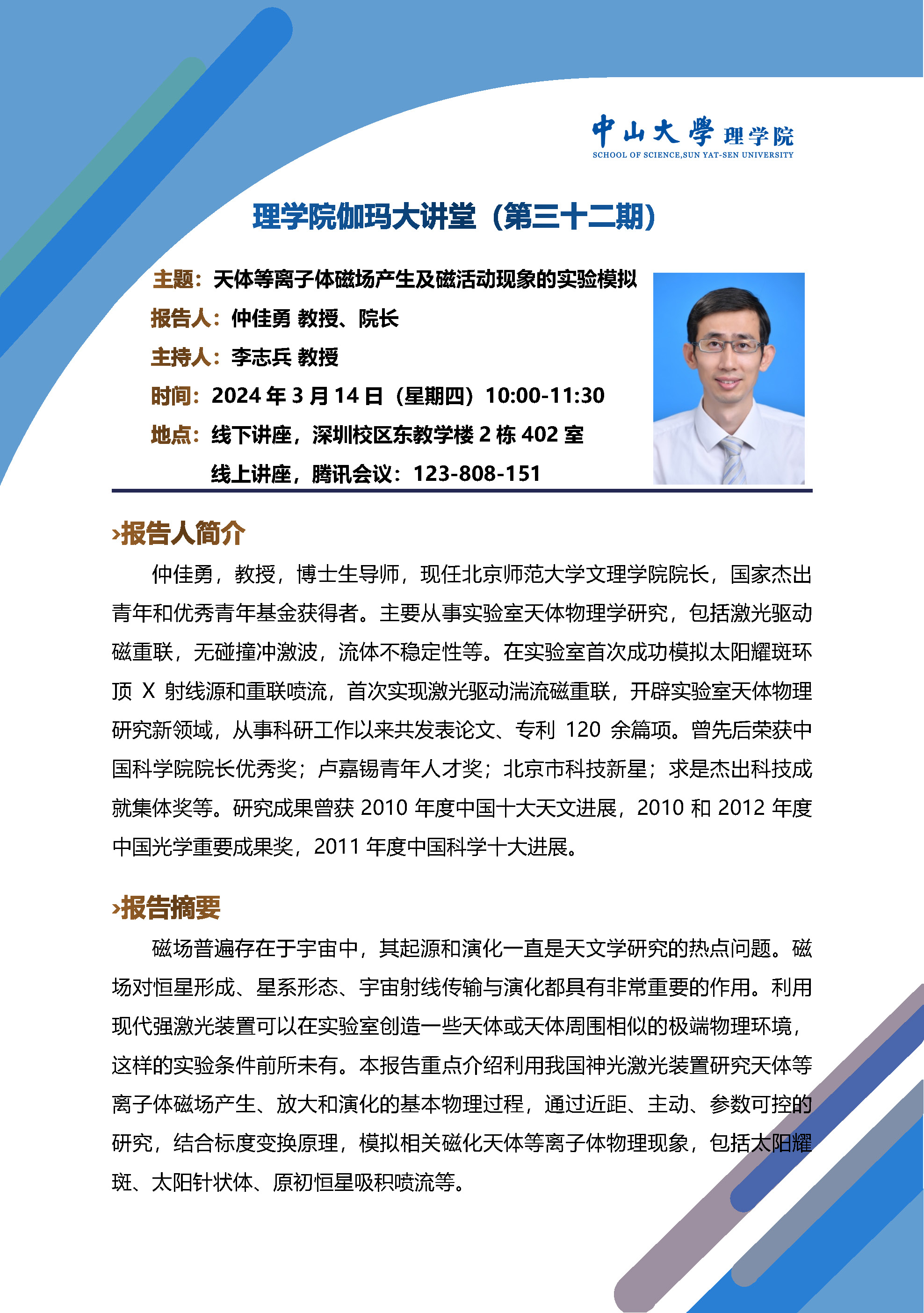 伽玛大讲堂(第32期):天体等离子体磁场产生及磁活动现象的实验模拟