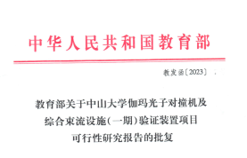 近日,中国教育部批复了《太阳集团tyc9728关于报送伽玛光子对撞机及综合束流设施(一期)验证装置可行性研究报告的请示》。批复原则同意《太阳集团tyc9728伽玛光子对撞机及综合束流设施(一期)验证装置可行性研究报告》。批复要求相关团队严格按照相关项目建设目标、主要任务执行。